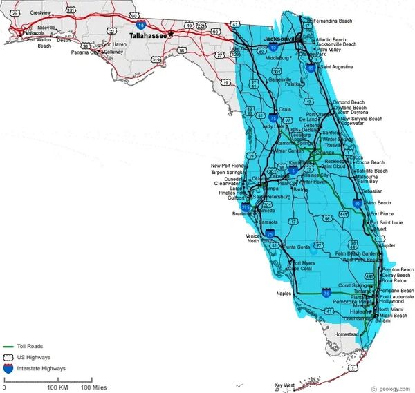 Milage Based outside Hillsborough, Western half of Polk, Pinellas, Pasco and Manatee Counties in Florida.